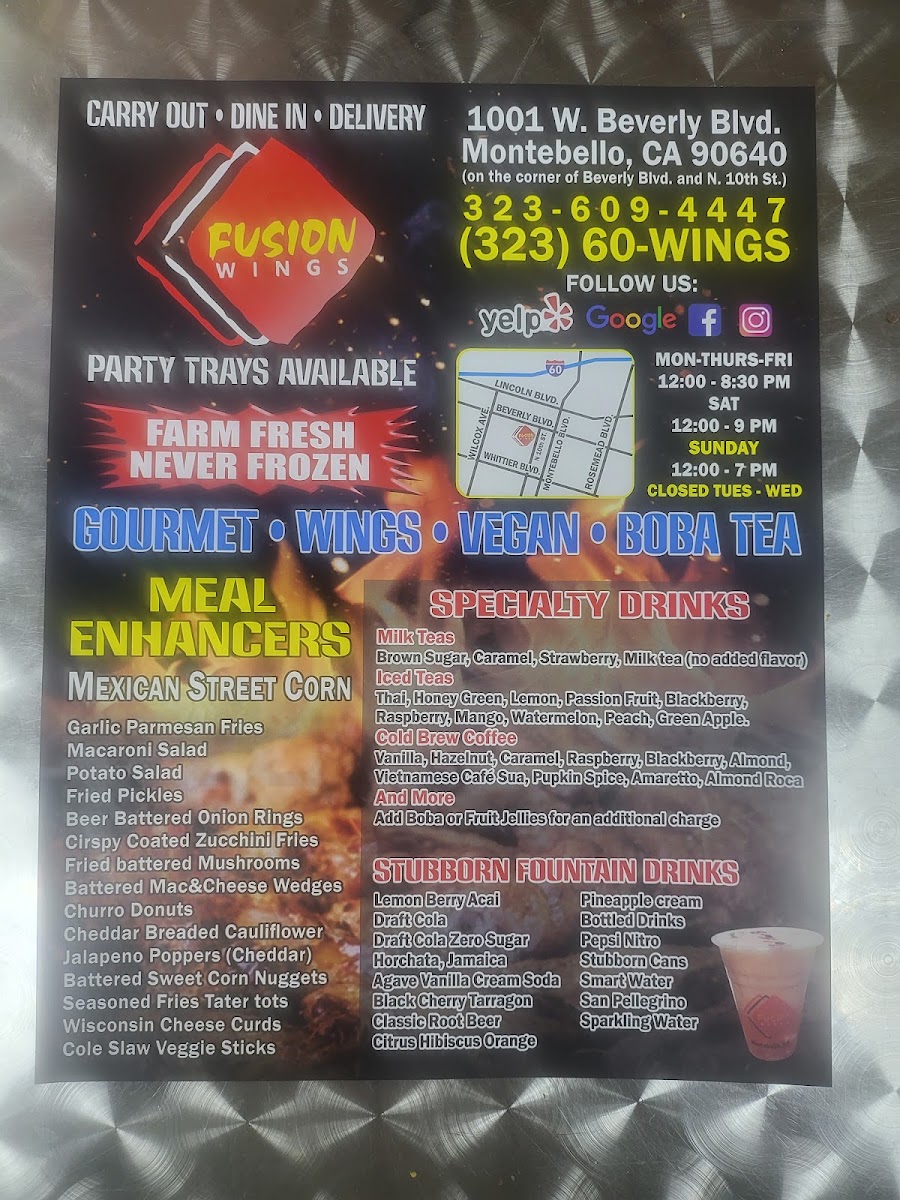In the heart of Montebello, Fusion Wings is more than just a restaurant; it’s an experience. Whether you’re a local or just passing through, don’t miss out on the opportunity to savor some of the best wings in town.